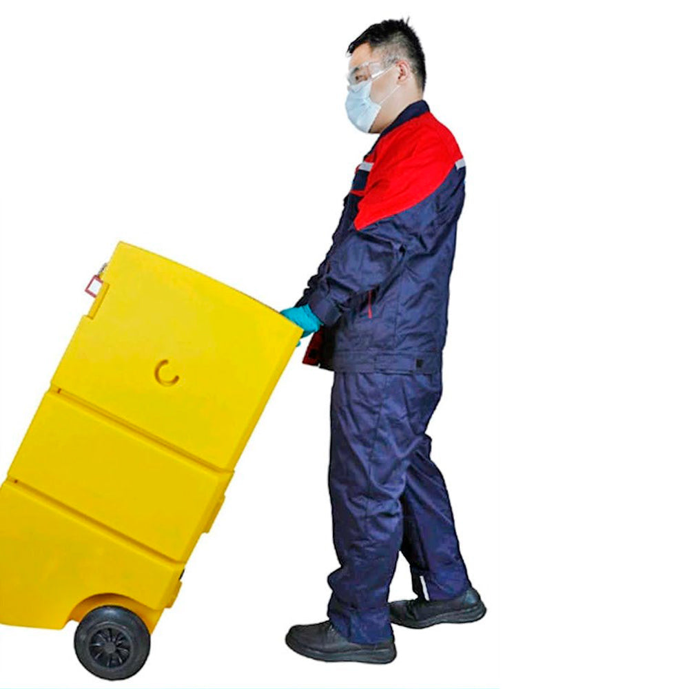 Kit Antiderrame que consta de todos los elementos requeridos para contener un derrame crítico de hidrocarburos, en un contenedor con ruedas para movilizarse fácilmente a los puntos críticos del siniestro.