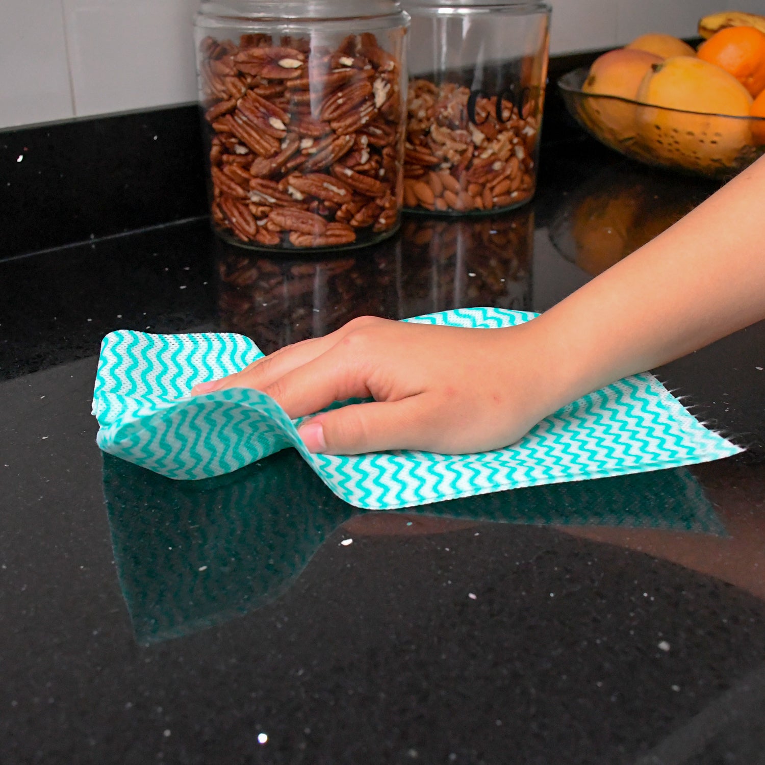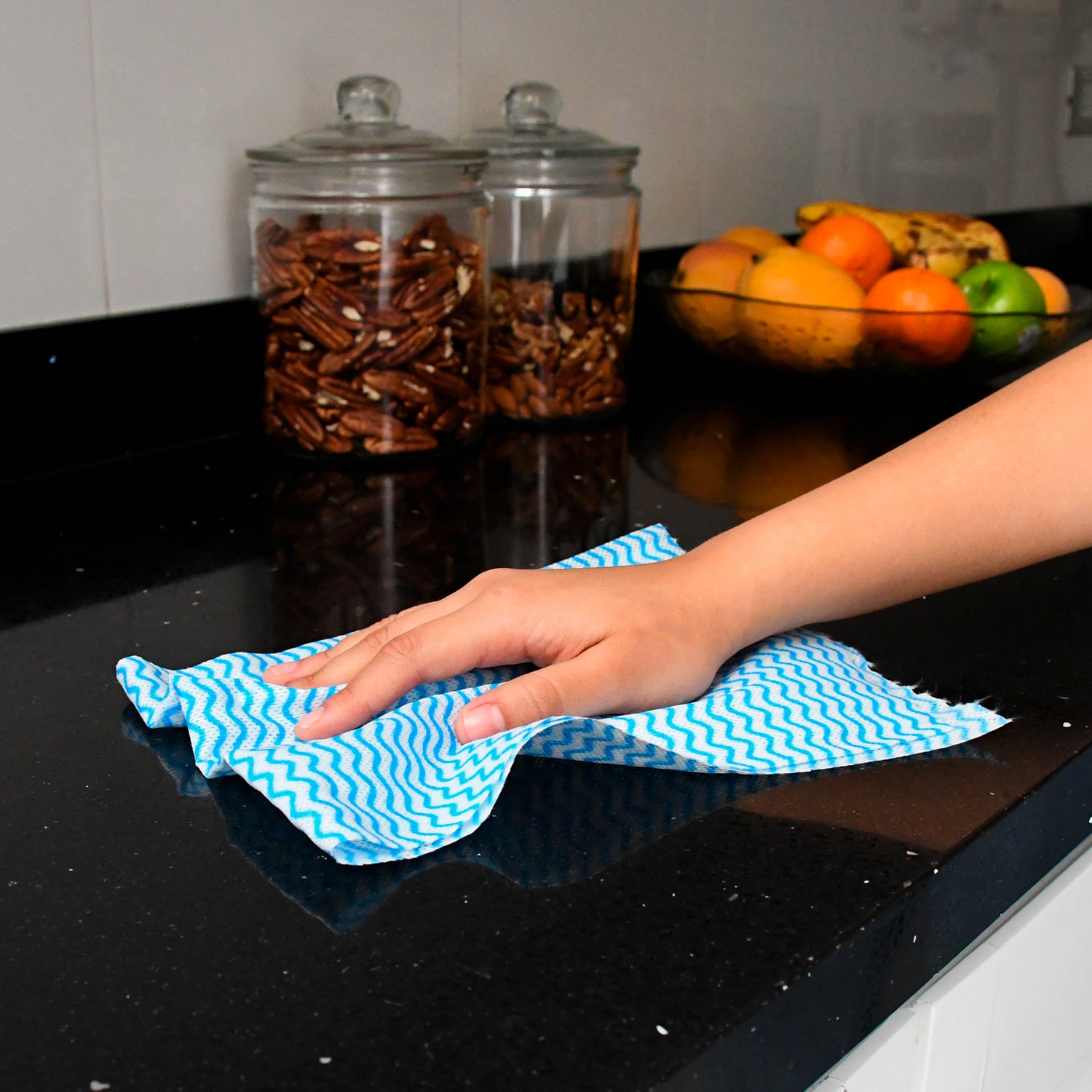 WM Food Service es un paño de tela no tejida de gran capacidad de absorción y resistente a la tracción, compuesto por celulosa (biodegradable) y poliéster (no biodegradable) ideal para la limpieza en la industria de alimentos, disponible en siete colores.
